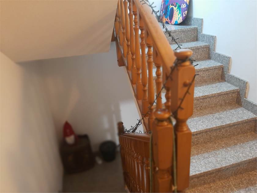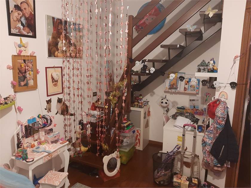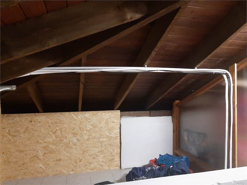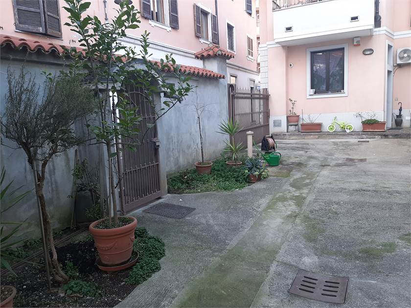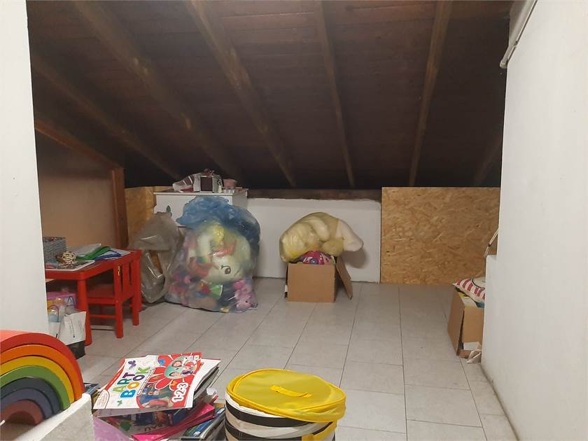 Porzione di Casa semi-indipendente con ingresso da vano scala di proprietà sito al piano terra, composto da soggiorno/pranzo, cucina abitabile, locale caldaia disimpegno, 2 camere, bagno, balcone e vano scala di proprietà, con soprastanti sottotetto e ripostiglio al piano secondo, collegati da scala interna e pertinenti due locali cantina e vano scala di proprietà al piano interrato. autorimessa al piano terra di mq 40 (ideale come magazzino) posto auto, no spese condominiali.