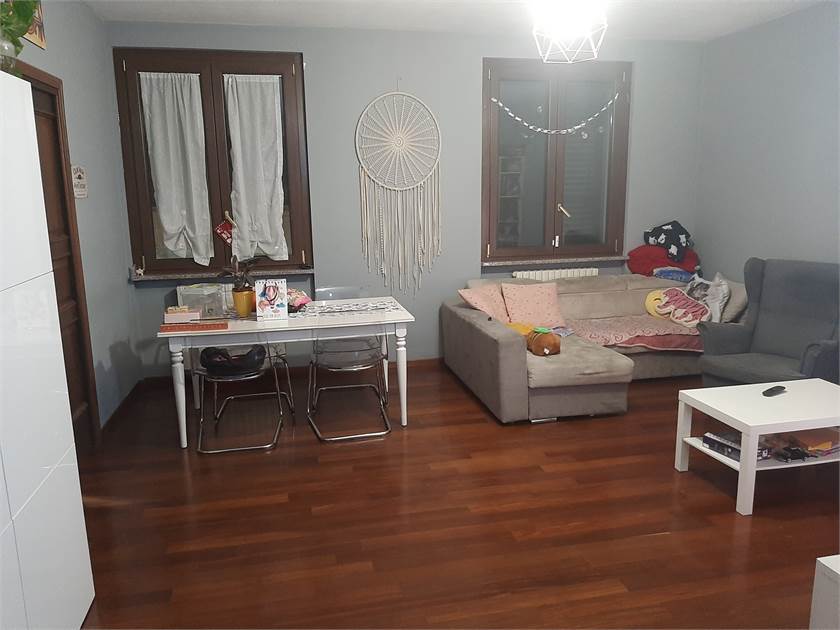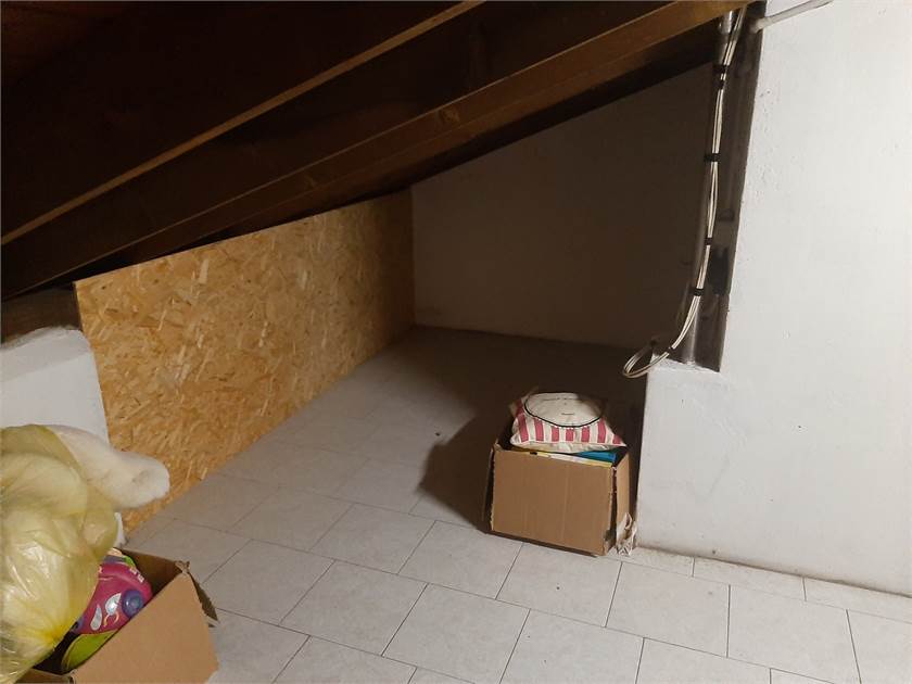 Porzione di Casa semi-indipendente con ingresso da vano scala di proprietà sito al piano terra, composto da soggiorno/pranzo, cucina abitabile, locale caldaia disimpegno, 2 camere, bagno, balcone e vano scala di proprietà, con soprastanti sottotetto e ripostiglio al piano secondo, collegati da scala interna e pertinenti due locali cantina e vano scala di proprietà al piano interrato. autorimessa al piano terra di mq 40 (ideale come magazzino) posto auto, no spese condominiali.